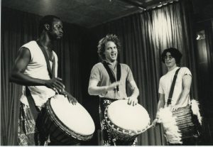 La précision, l’attention sans tensions, la concentration, l’imagination, la présence, la gestion des énergies, l’interaction, la communication, la cohésion du groupe, sont, entre autres, des qualités et des ressources qui sont développées et enrichies par la pratique de la musique, et, en particulier, par la pratique d’instruments rythmiques. La relation aux mouvements de la danse, aux énergies et finesses de l’expression, sont une source Cela a suscité et enrichit une prise de conscience de certains potentiels humains dans leur expression individuelle et collective. Avec ma profonde reconnaissance et tout mon respect à Adama Dramé, maître exigeant, qui a su transmettre la partie de son immense expérience et savoir musical que j’ai été à même de recevoir. Voici ce que je peux partager avec vous en rapport avec les tambours africains. Jean-Marie Senn